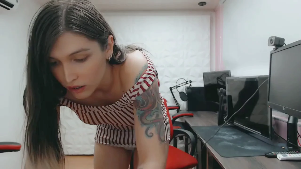 Die sexy T-Girl Franshesca dominiert den Hintern ihres Chefs über Webcam