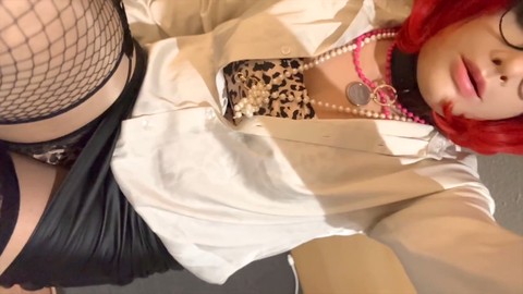 Rosa sissy-zimmermädchen erwischt beim anziehen und spielen und lässt einen Sissygasm ihre puppe reiten